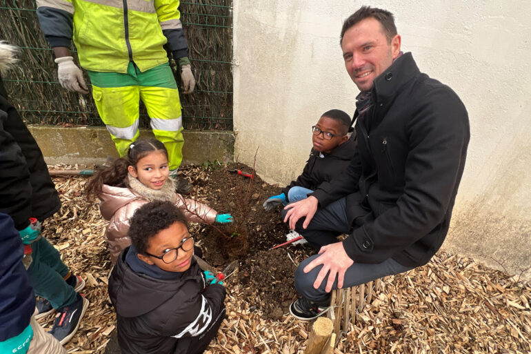 Le 16 décembre, les élèves du groupe scolaire Marie Curie ont retroussé leurs manches pour participer aux plantations dans leurs cours d’école. Une étape symbolique qui vient finaliser le programme de végétalisation lancé il y a deux ans dans toutes les écoles de la commune.