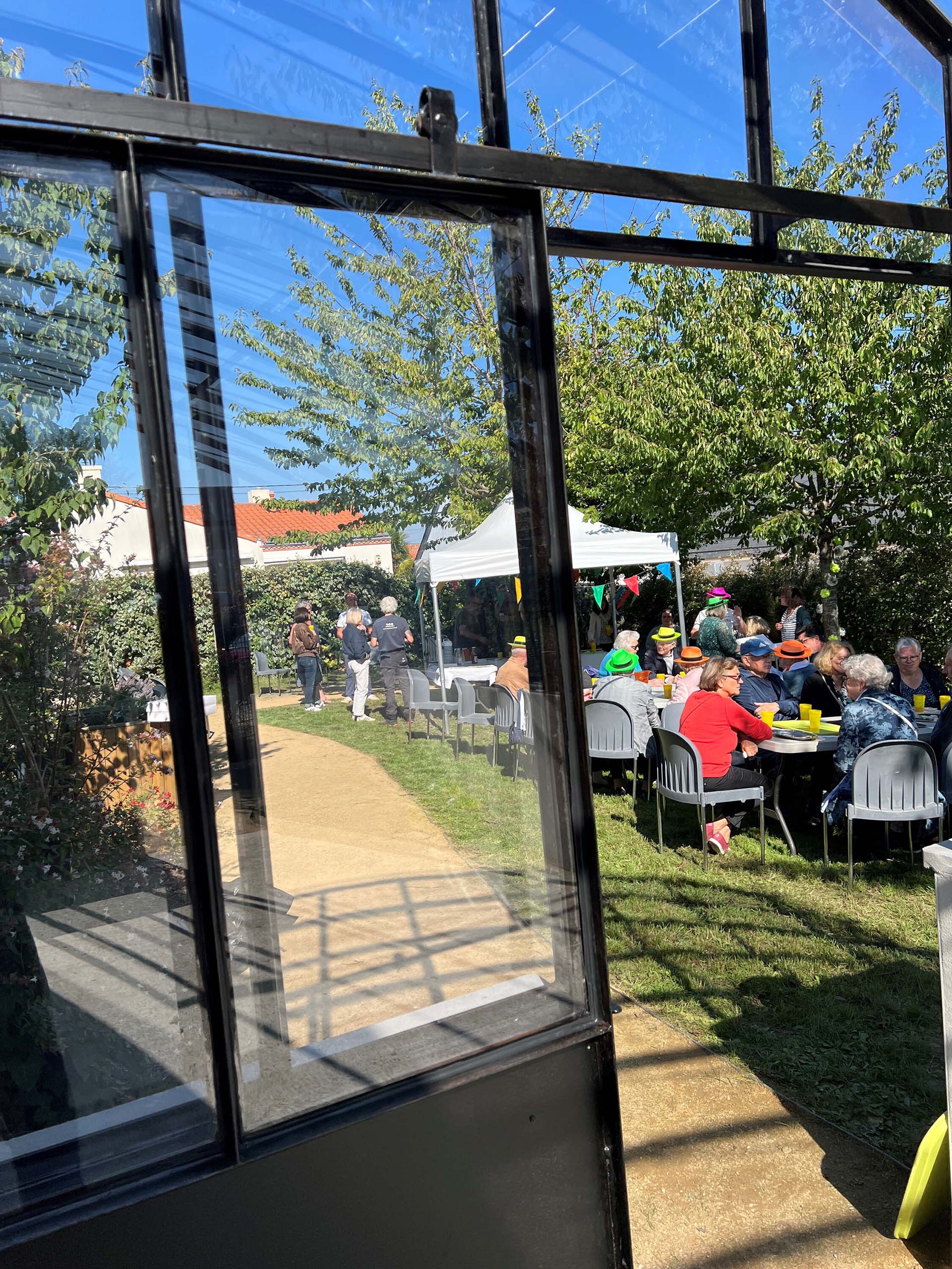 Pensé pour être inclusif et pratique, le jardin a été aménagé avec soin : chemins en sable stabilisé pour les poussettes et les fauteuils ; jardinières haute pour favoriser l’accessibilité aux aîné·es ; une belle diversité de fleurs, d’aromates, de légumes et de fruits pour éveiller tous les sens. Et tout récemment, de nouveaux équipements ont complété l’espace : des bancs et chaises pour se reposer, un cabanon pour ranger les outils et une serre réalisé par les services de la Ville pour prolonger les cultures toute l’année.