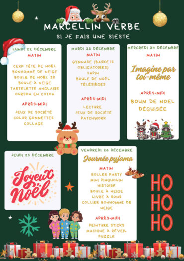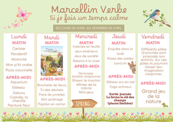 ALSH Marcellin Verbe 3/5 ans – Aimée Verbe 6/9 ans – Marie Curie 3/5 et 6/9 ans – Le S’Potes 10/14 ans