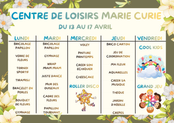 - accueils de loisirs Marie Curie pour les 3-6 ans et 6-10 ans (à partir de septembre 2024).