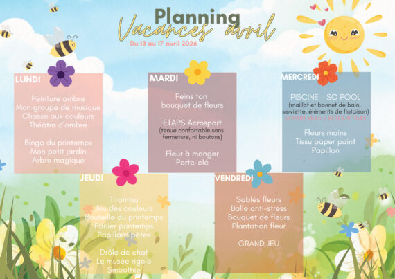 En ce qui concerne les accueils lors des petites vacances scolaires, vacances d’été et séjours, elles sont soumises à un calendrier de réservations ci-dessous.