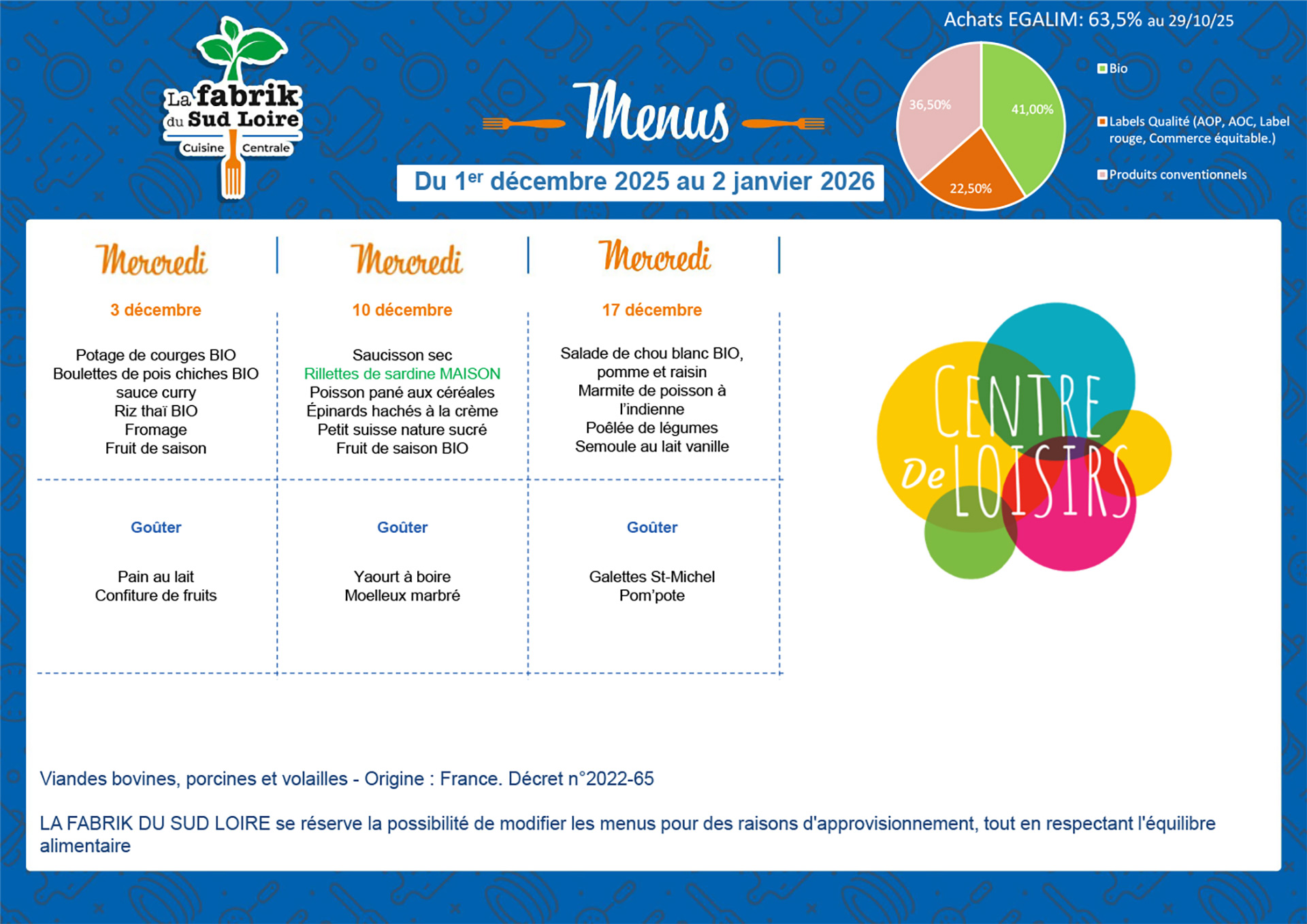 Menus décembre 2025