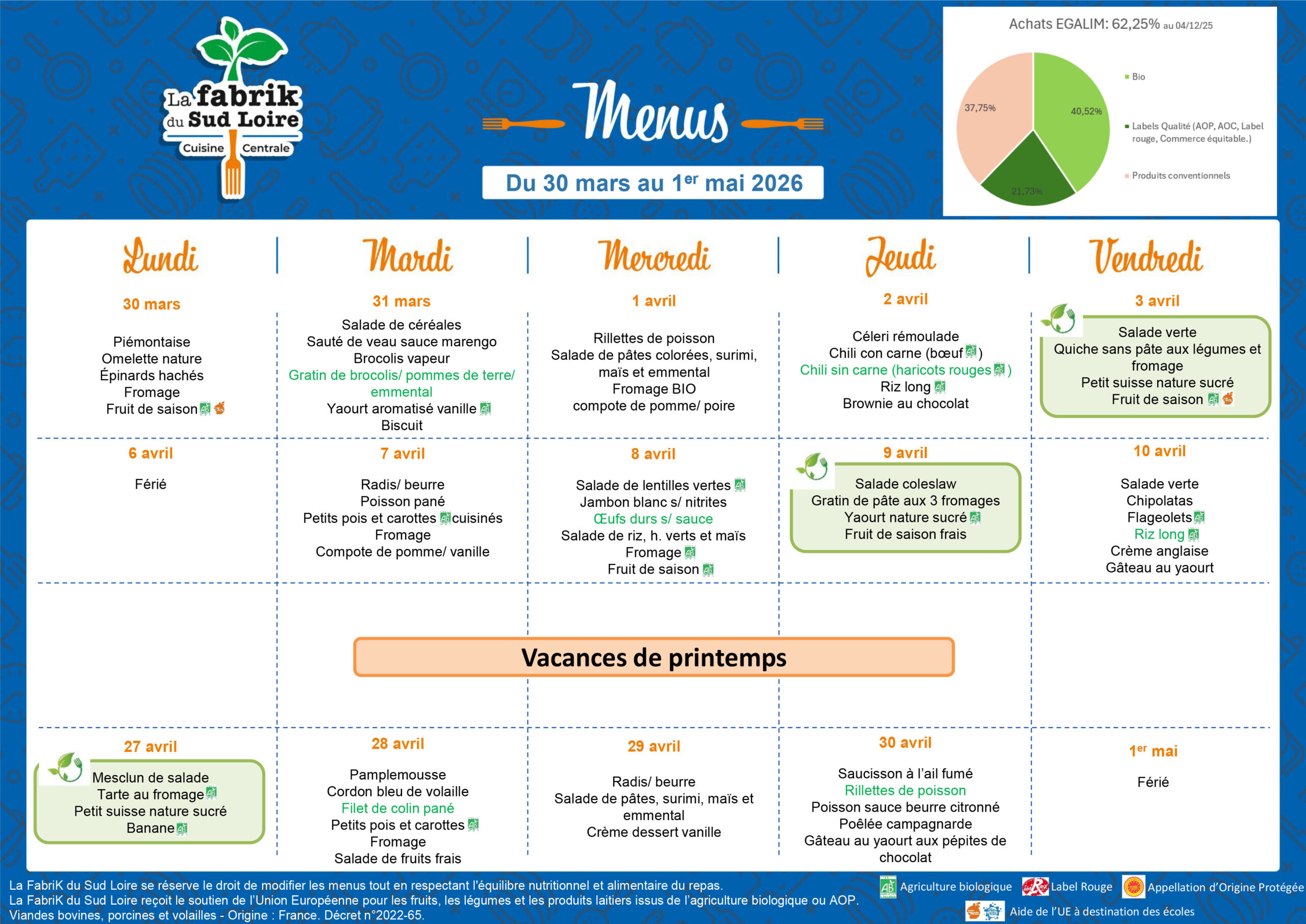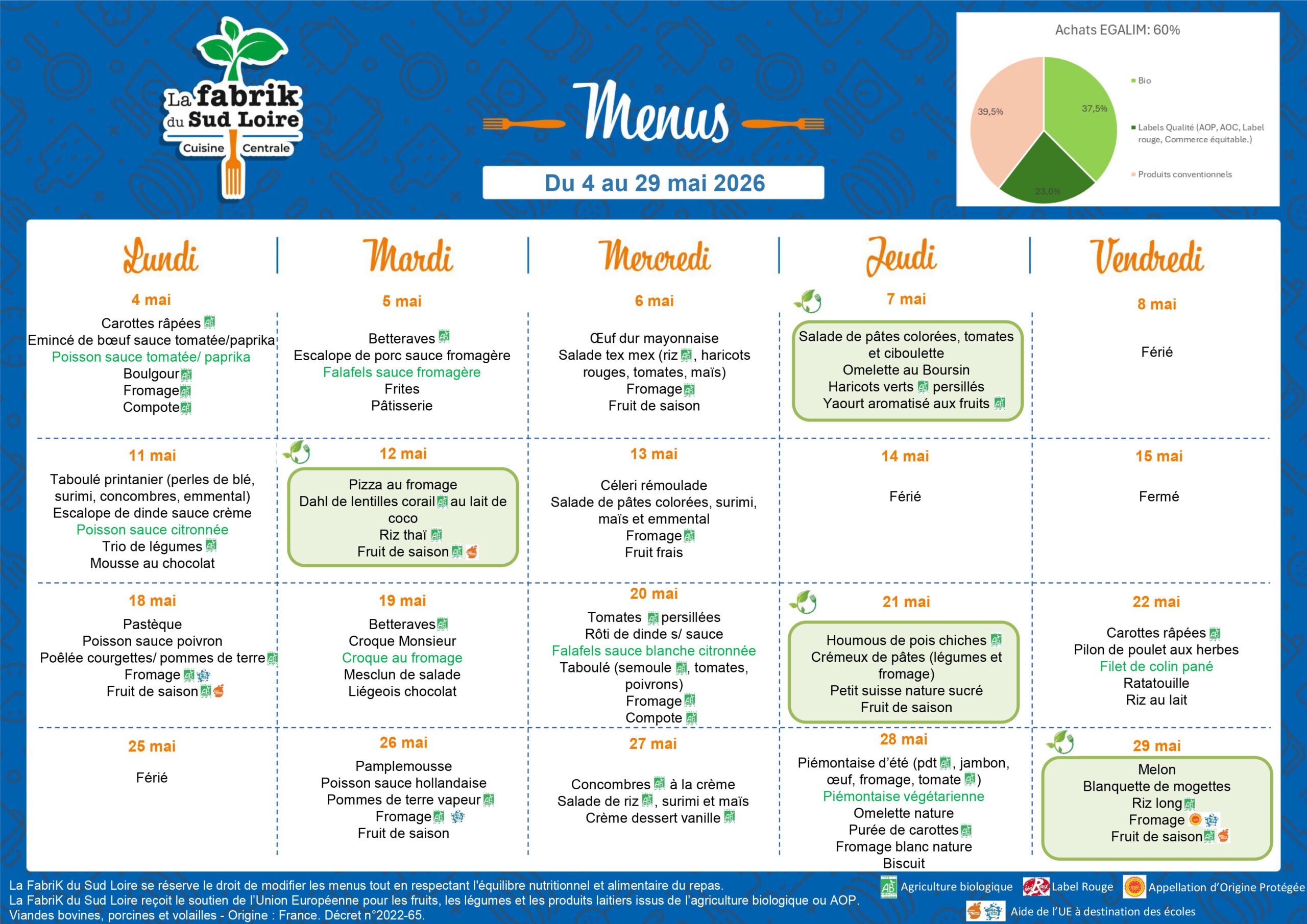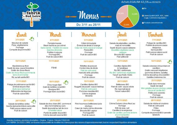 Les repas sont préparés depuis juillet 2025 à la cuisine centrale mutualisée : la Fabrik du Sud Loire.